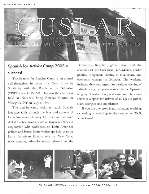 “Psy-Ops, Citizens, and the Panama Invasion” “Nicaragua: Will Revolutionary Democracy Succeed?” “Bill Rogers: The Origins of CUSLAR” “Cindy Crowner: CUSLAR in the 1970’s From Chile to Nicaragua” “The Friends of Chile” “Mary Jo Dudley: CUSLAR in the 1980’s Focus on Central America” “Joanna Gajardo: On Solidarity and the Women’s Movement” “Bill Gasparini: Reflections on my Involvement in CUSLAR, or How CUSLAR was perhaps the major influence on everything I have done since Cornell” “On Six Jesuits, a Massacre, and the Women of El Salvador” |